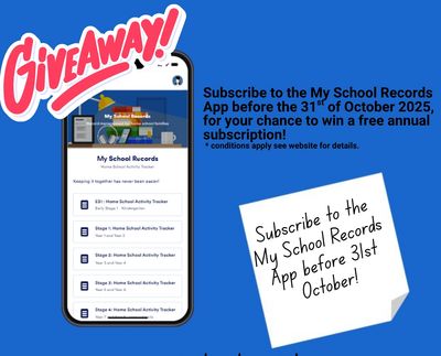 4. To be eligible for the prize, subscribers must be over 18 years of age. and must have an active, ongoing subscription to any My School Records App package from 31st October 2025 (or before) until 31st December 2025.